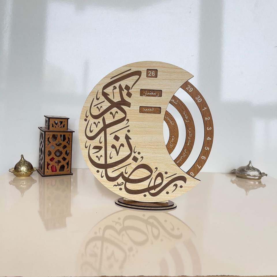 การตกแต่งเดือนรอมฎอนทำด้วยมือด้วยไม้คุณภาพระดับพรีเมียมเหมาะสำหรับการเข้ามัสยิดและการชุมนุมของครอบครัวตามเทศกาล