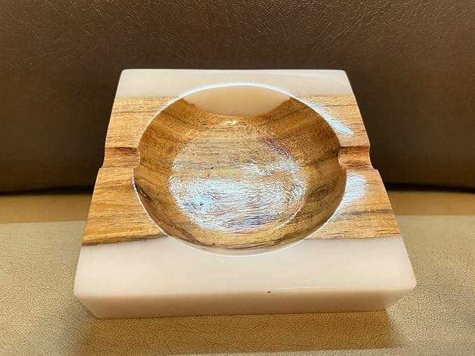 ที่เขี่ยบุหรี่ทำมือจากไม้และเรซิ่น ดีไซน์ทันสมัย เหมาะสำหรับใช้ในบ้านหรือระเบียง ผลิตจากอีพ็อกซี่เรซิ่นและไม้ ราคาสุดคุ้ม