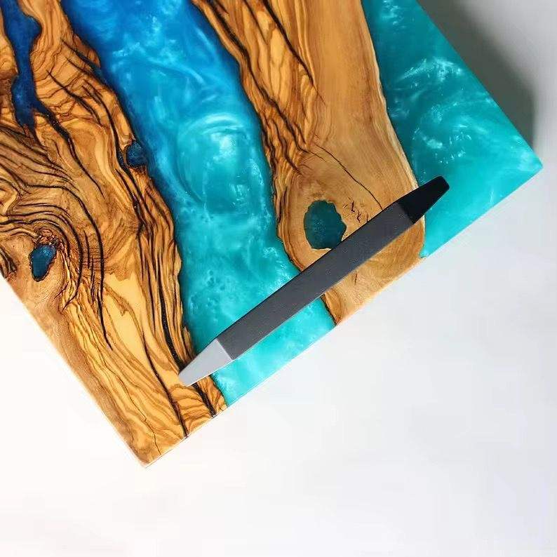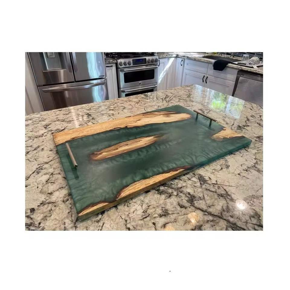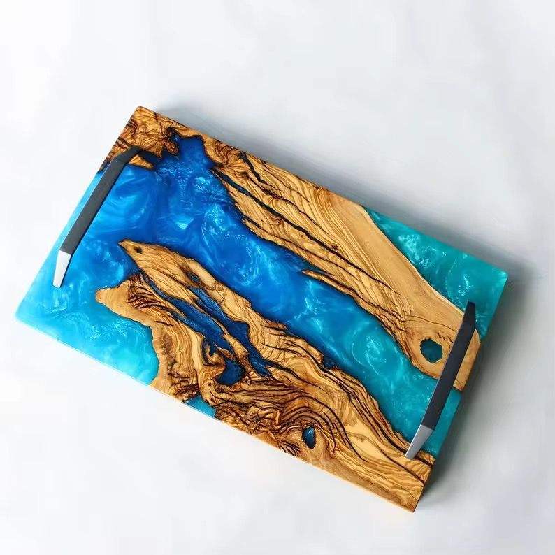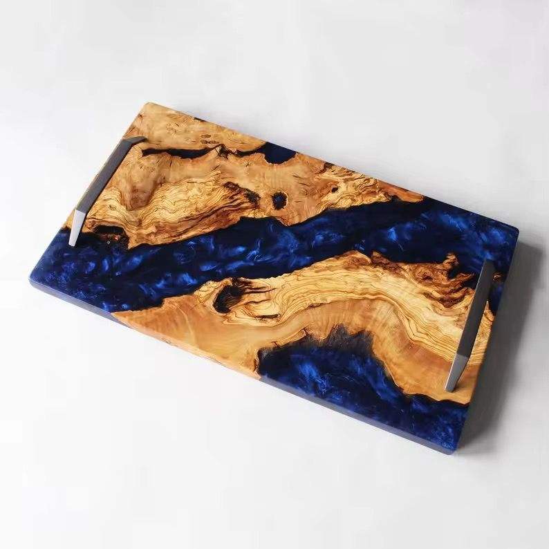 ถาดเสิร์ฟทำมือจากไม้และเรซิ่น ประดับด้วยหินอาเกตธรรมชาติ รุ่นพิเศษสำหรับรอมฎอน
