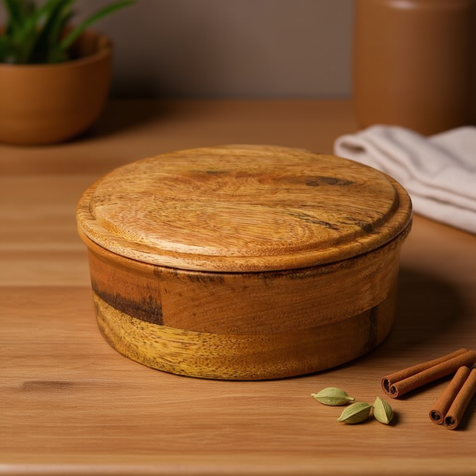 กล่องใส่โรตีไม้ทำมือพร้อมชุดกล่องใส่เครื่องเทศ กล่องเก็บของในครัว กล่องใส่ชาปาตี ของตกแต่งบ้าน กล่องจัดระเบียบอเนกประสงค์สำหรับเก็บขนมปัง