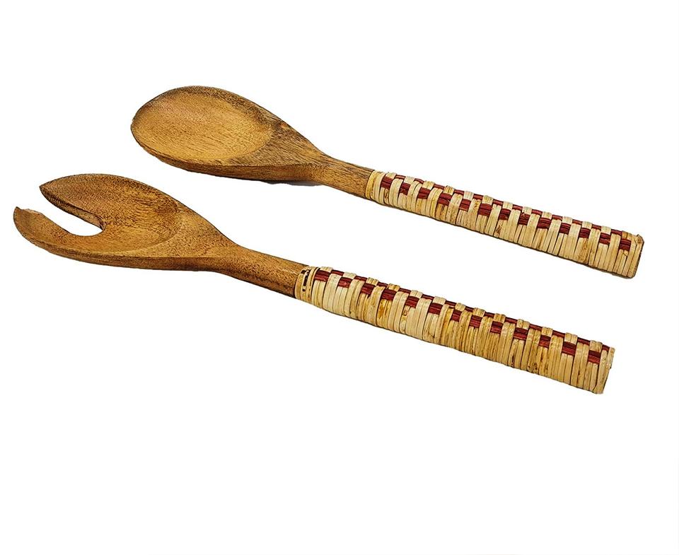 ชุดเซิฟเวอร์สลัดไม้แฮนด์เมด2ชิ้นอุปกรณ์เครื่องครัวไม่เหมือนใคร
