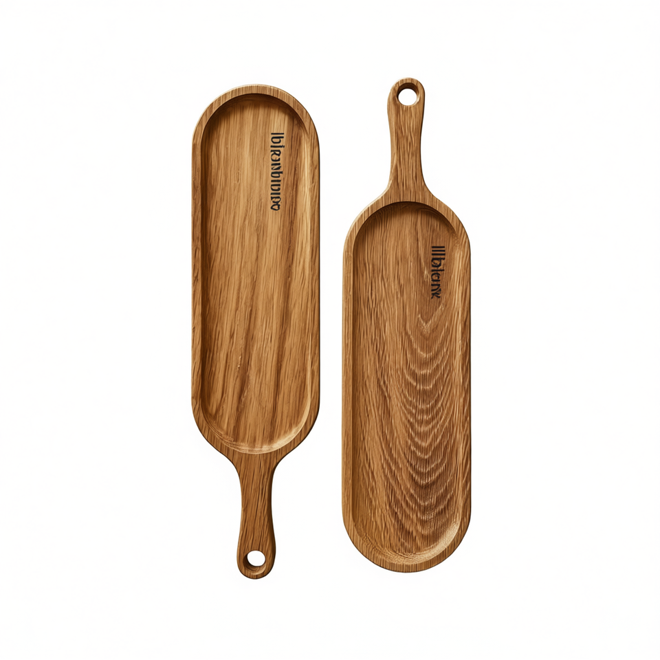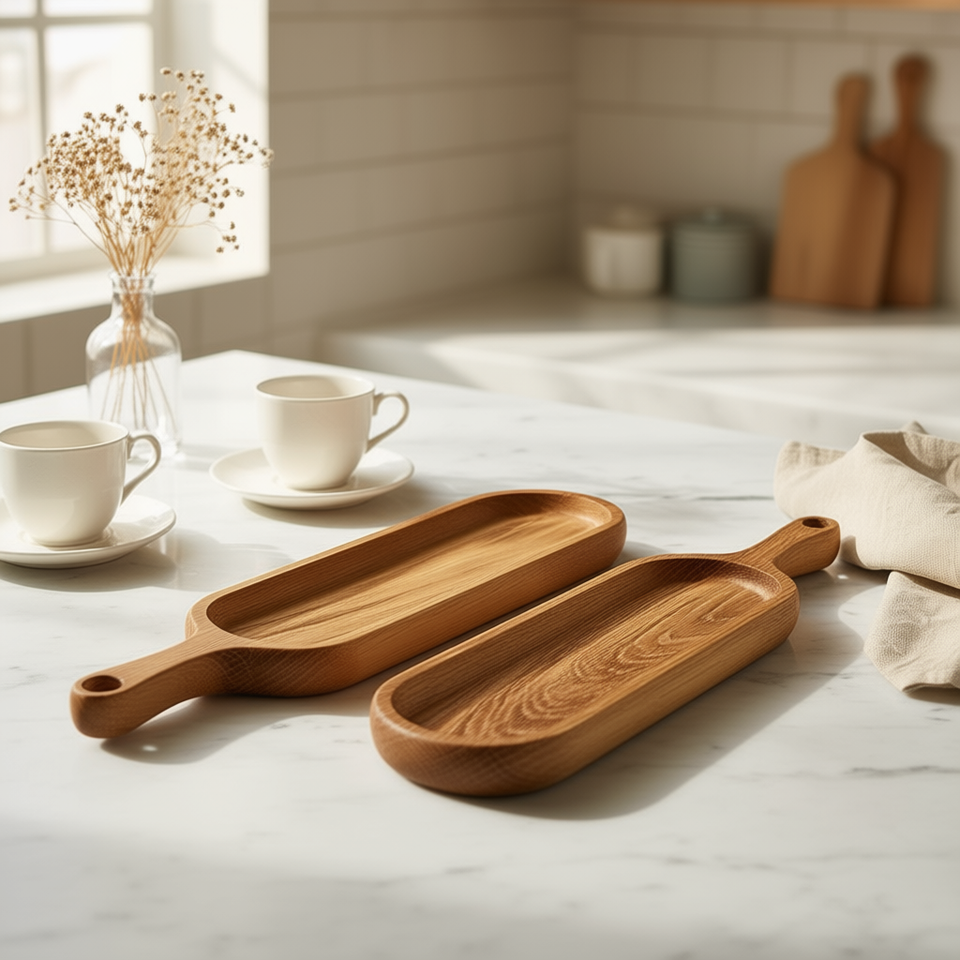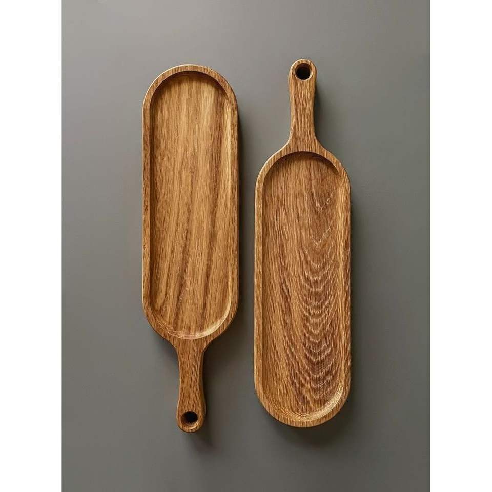ถาดเสิร์ฟไม้ทำมือพร้อมหูจับ พิมพ์ลายสำหรับใช้ตกแต่งในครัว สำหรับชา กาแฟ ขนมขบเคี้ยว หรืออาหารเช้า