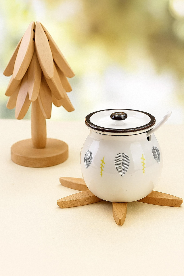 Handmade Polished Painted Wooden Tree Coaster Trivet Set | Eco-Friendly Natural Wood Heat Resistant Irregular Shape Dining Table