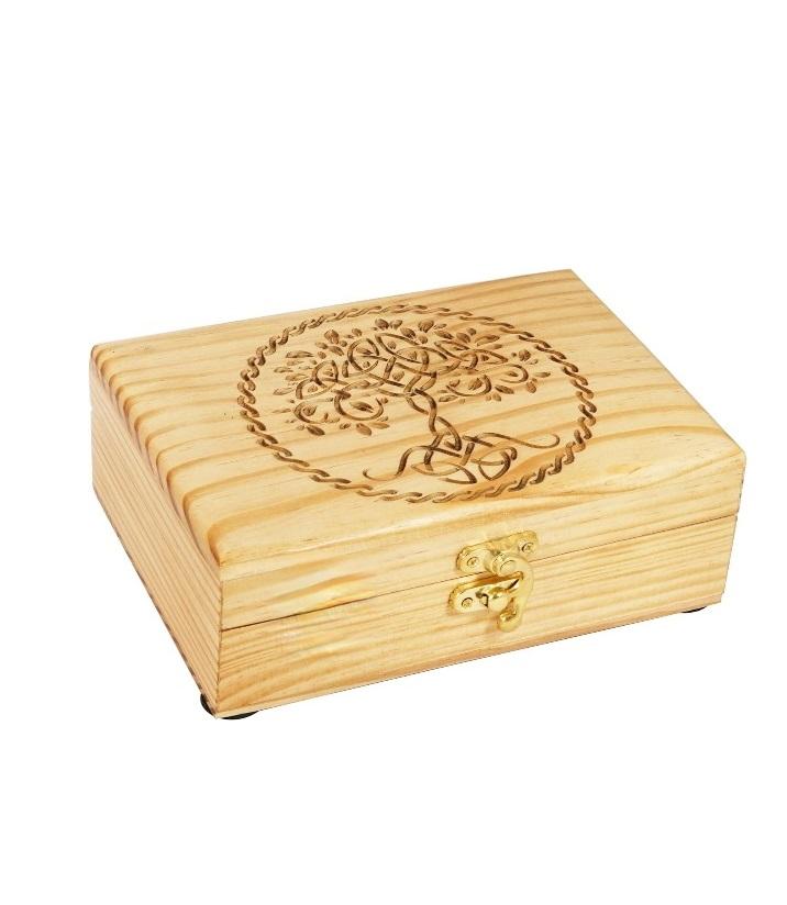 แฮนด์เมดโกศไม้แกะสลักกล่องเครื่องประดับแกะสลักสําหรับผู้หญิง-ผู้ชายอัญมณี | กล่องตกแต่ง | ที่เก็บ (ต้นไม้ขอบเคลติก)