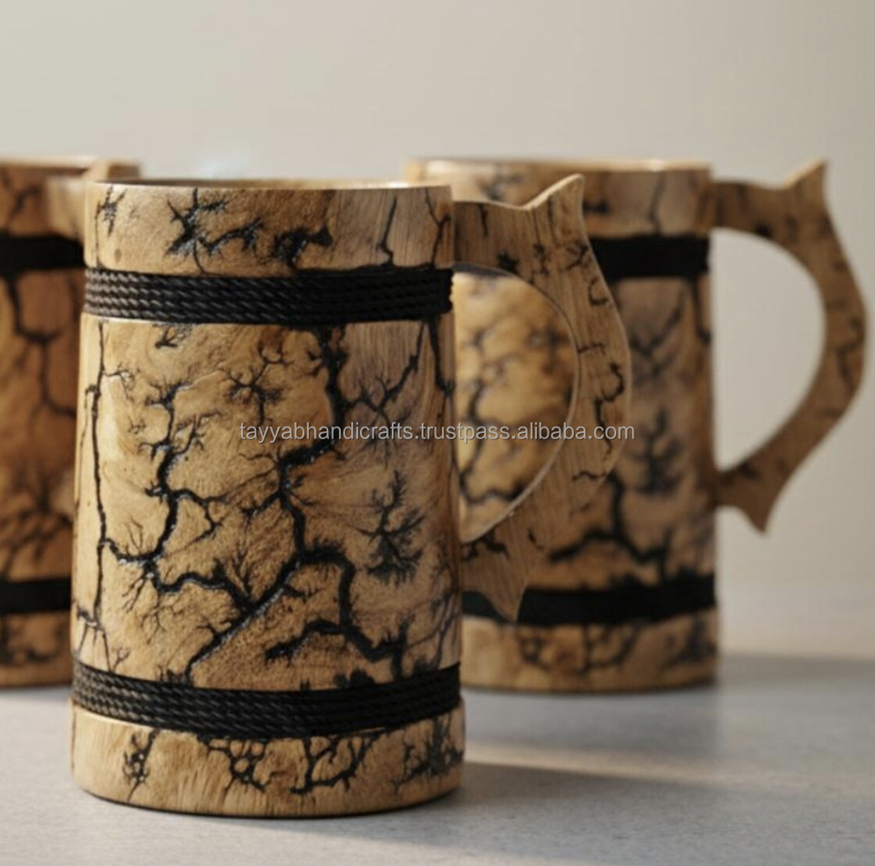 แก้วเบียร์ไม้ทำมือสไตล์วินเทจและแก้วไวกิ้งแบบคลาสสิก ชุด 50 ชิ้น สำหรับตั้งแคมป์ กิจกรรมกลางแจ้ง และเป็นของขวัญ