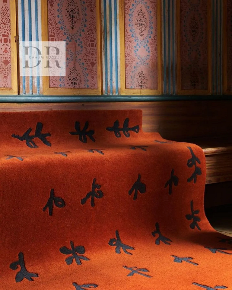 พรมขนสัตว์ทำด้วยมือด้วยตาขนาดใหญ่ในพื้นที่ขนาดใหญ่อิฐแดงสำหรับตกแต่งบ้านสำหรับห้องนั่งเล่นสำนักงานหรือทางเข้าประตูในมือ