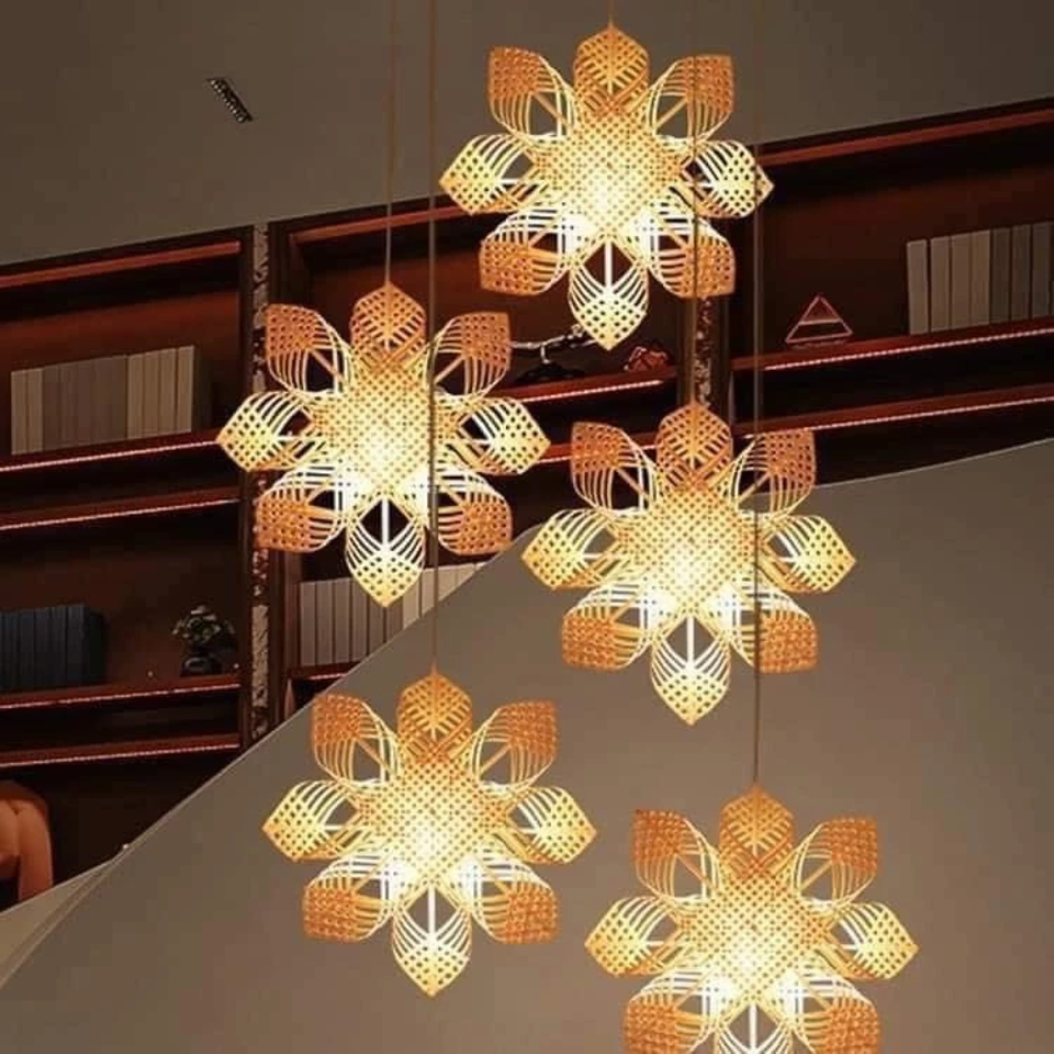 เครื่องจักสานทำด้วยมือลายดวงดาวไม้ไผ่ประดับเกล็ดหิมะต้นคริสต์มาสดอกไม้หวาย100% ผลิตในเวียดนาม