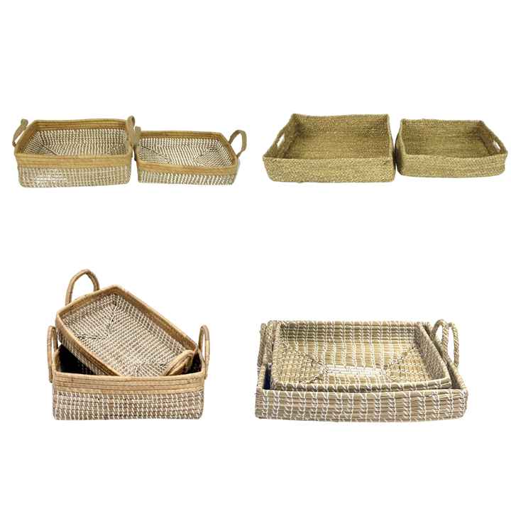ถาดใส่อาหารจานข้าวทำด้วยมือถาดใส่น้ำจากหญ้าทะเลถาดใส่ของในห้องน้ำ