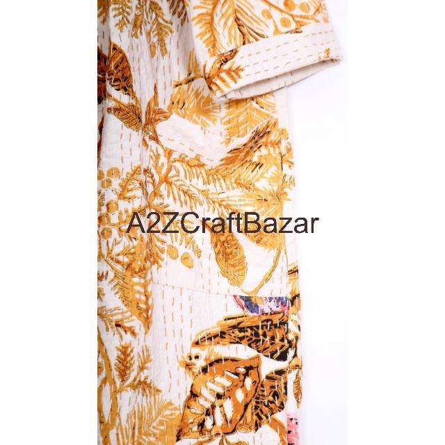 ชุดคลุมผู้หญิงผ้าฝ้าย 100% งานแฮนด์เมด ลายดอกไม้ คอวี แขนยาว 3 ส่วน ผูกเชือก หรูหรา นุ่ม ระบายอากาศ แห้งเร็ว