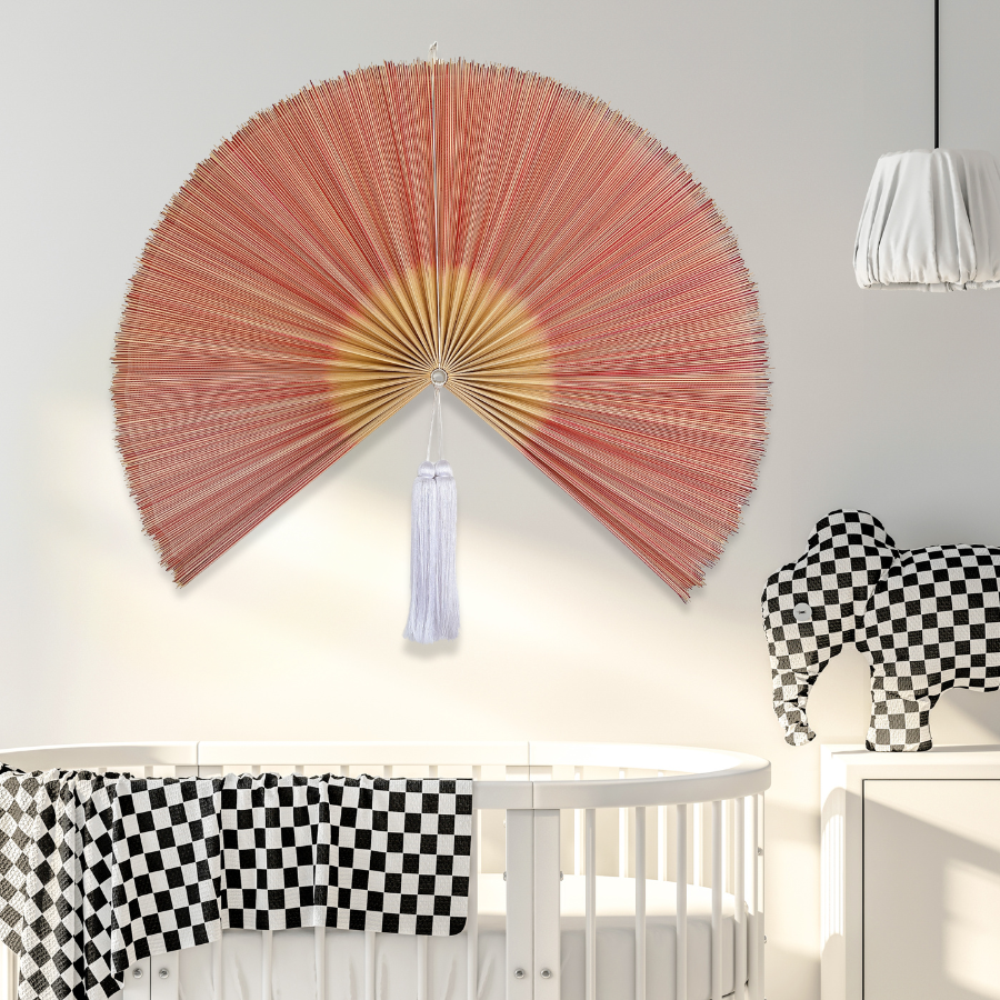 Handmade Woven Pink Bamboo Wall Fan Hanging Decor in Vietnam Wholesale Wall Hanging Fan Decor Bamboo Folding Fan Han Exim