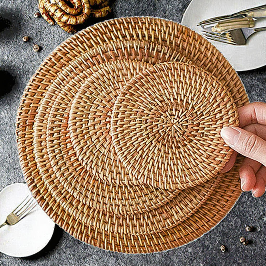 แผ่นรองแก้วหวายสานลายดอกไม้แบบคลาสสิก ทนความร้อน ผลิตในเวียดนาม