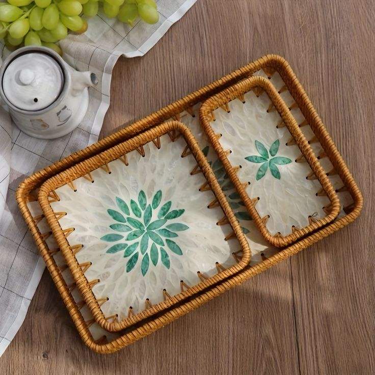 ถาดใส่ดอกไม้ทรงสี่เหลี่ยมลายมุกหวายสำหรับคุณแม่ถาดใส่ผลไม้หรูหราทำด้วยมือถาดใส่ดอกไม้สำหรับบ้านร้านอาหาร