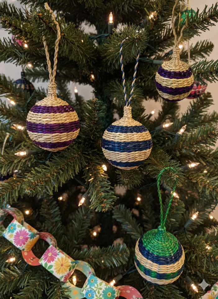 ลูกบอลหญ้าทะเลถักมือคุณภาพสูง กันน้ำ เป็นมิตรกับสิ่งแวดล้อม ของตกแต่งแขวนต้นคริสต์มาส งานฝีมือเวียดนาม