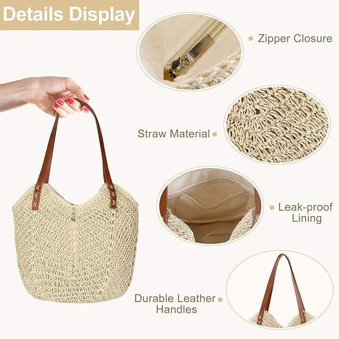 Dreamcraft กระเป๋าโท้ทผ้าทอมือสำหรับผู้หญิง, กระเป๋าโท้ทสำหรับชายหาดฤดูร้อนที่มีที่จับและกระเป๋าสะพายคาดลำตัวจากเวียดนาม