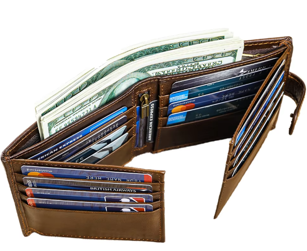 กระเป๋าสตางค์หนังวัวแท้ทรงยาวสำหรับผู้ชาย แบรนด์แฮนด์เมด รุ่น Crazy Real Cow Leather สไตล์วินเทจ พร้อมคุณสมบัติ RFID ปิดด้วยตัวล็อคแบบ Hasps หนังแท้