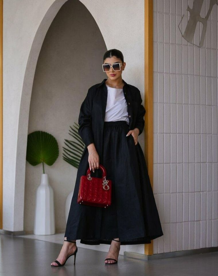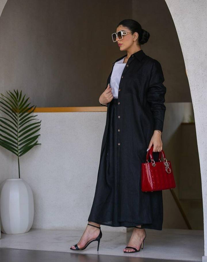 กระโปรงยาวเต็มขนาด XXL ทำด้วยมือมีกระดุมปกเสื้อสไตล์มุสลิมอาบายาแต่งระบายแรงบันดาลใจจากดูไบสำหรับผู้ใหญ่