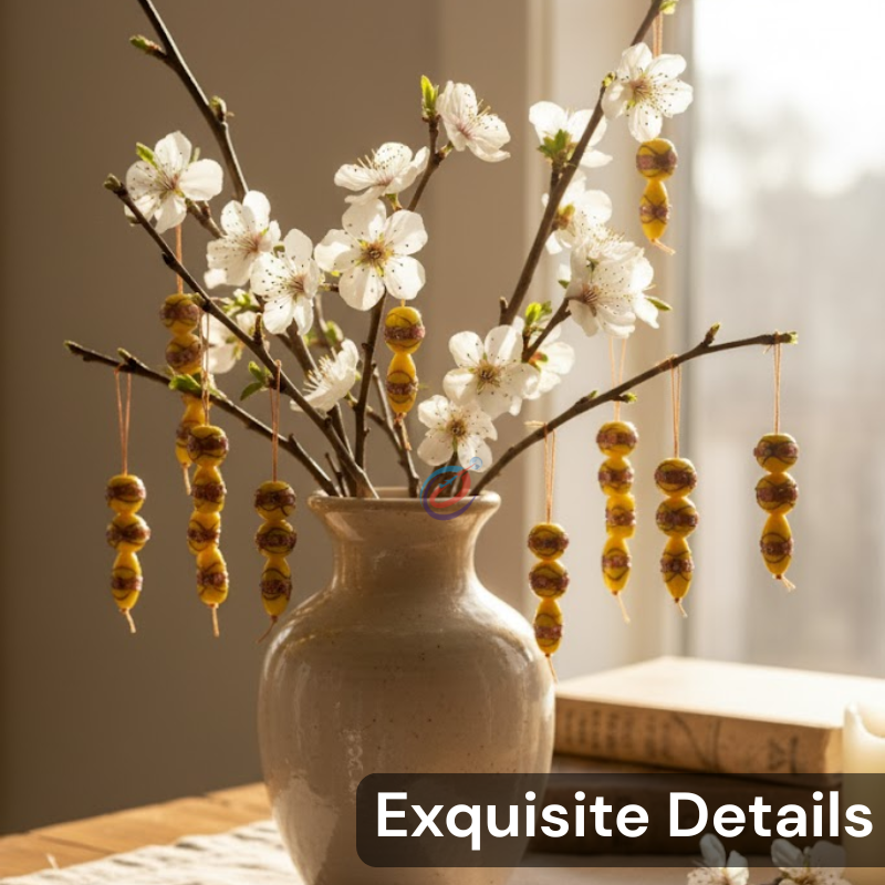 ลูกปัดแก้วทำมือสีเหลืองแบบแลมป์เวิร์ค ขนาด 8 นิ้ว ต่อเส้น | ลูกปัดตกแต่งรูปทรงหลากหลายลายเค้กแต่งงาน | งานฝีมือ