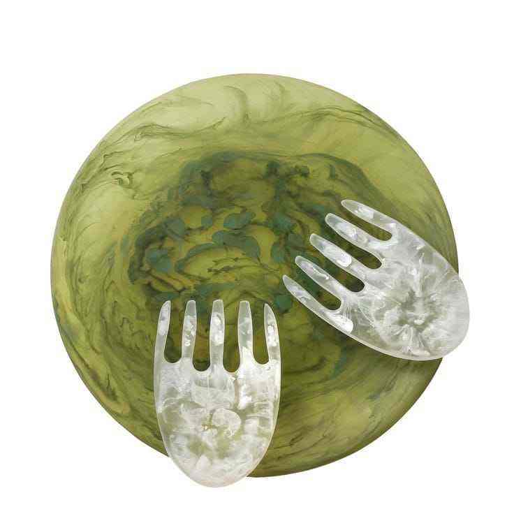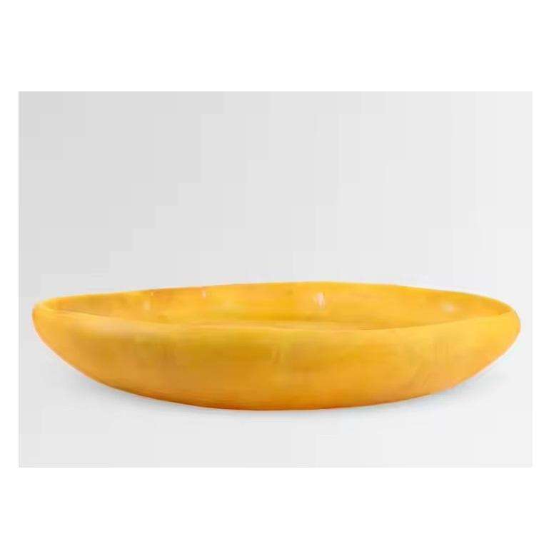 Artizon จานเสิร์ฟเรซิ่นสีเหลืองขัดเงาแบบแฮนด์เมดสำหรับสตูดิโอจานเสิร์ฟขนาดใหญ่รูปทรงแปลกดีไซน์หรูหราทันสมัย