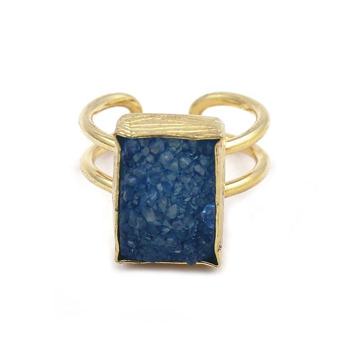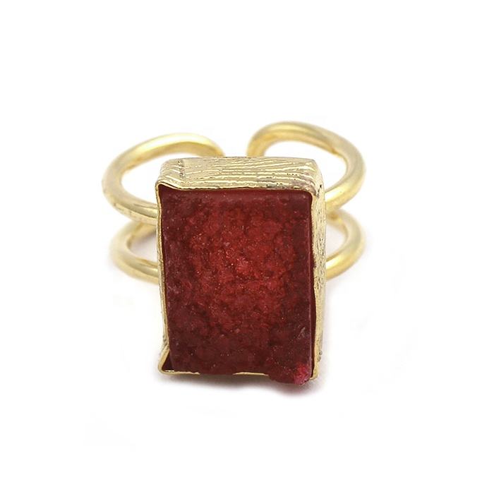 แหวนทองเหลืองทรงสี่เหลี่ยมปรับได้ทรงโบฮีเมียนตั้งค่าแบบโบฮีเมียนหินโมราน้ำตาลสีเหลืองทำด้วยมือ