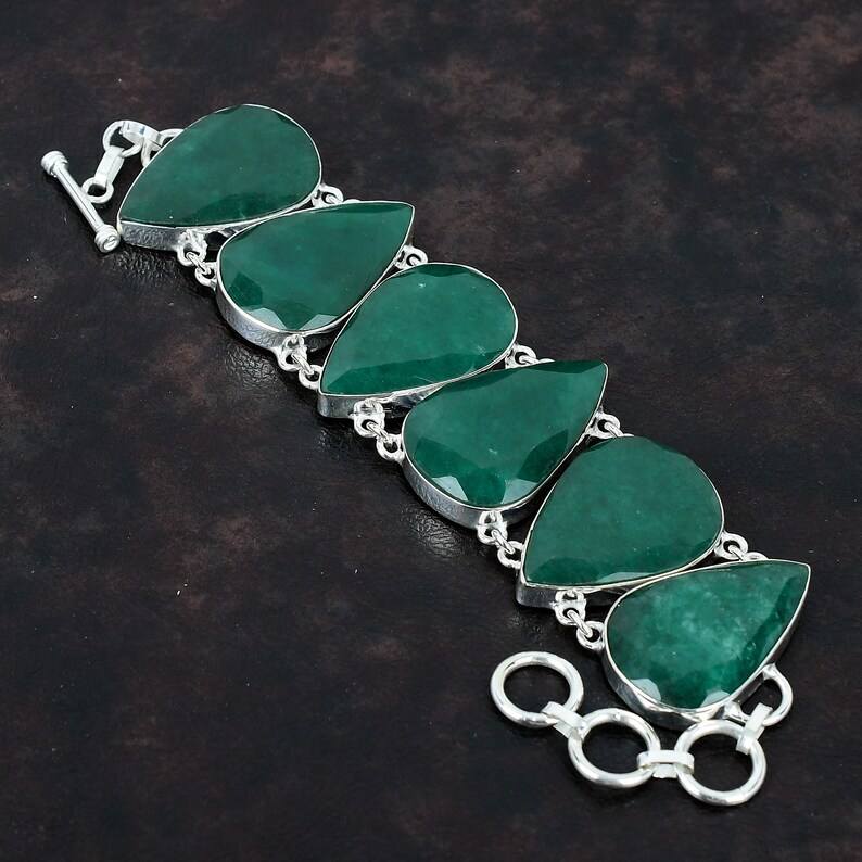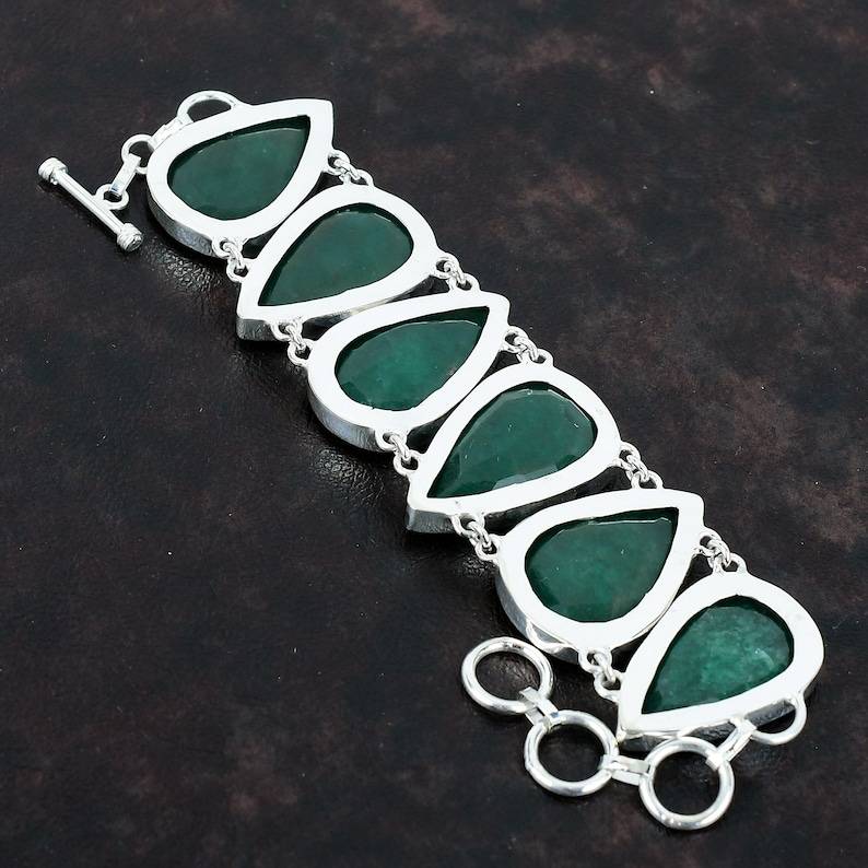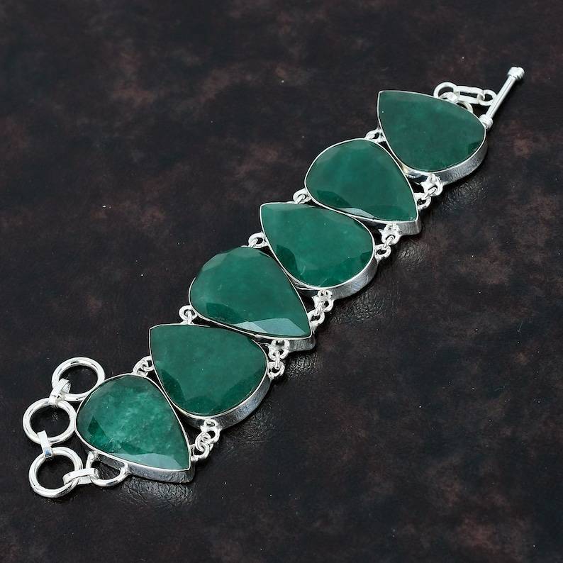กำไลข้อมือทำมือจากมรกตแซมเบียทรงหยดน้ำ เครื่องประดับเงินแท้ มรกตสีเขียวธรรมชาติ สำหรับผู้หญิง ขายส่ง