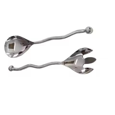ชุดช้อนส้อมสลัดลายซิกแซกทำมือ สำหรับชุดช้อนส้อม พร้อมการขัดเงาแบบกระจกสีเงิน