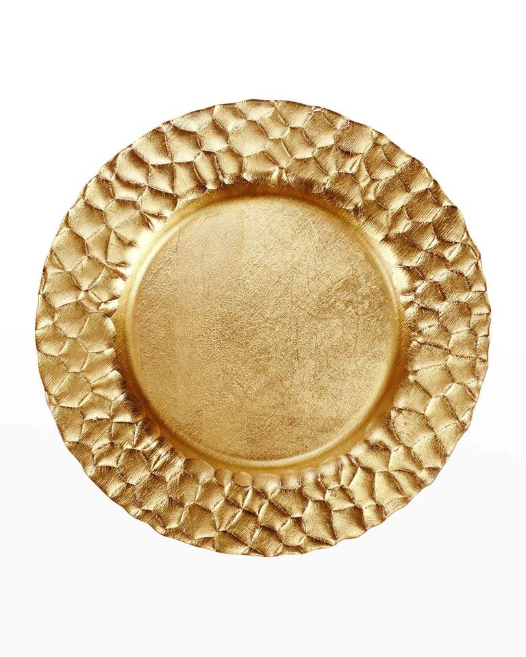 Handmade antique decorative finish embossed round metal charger plate for wedding dining festive banquet restaurant