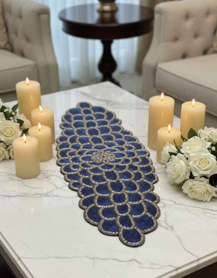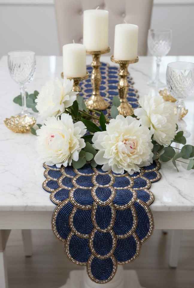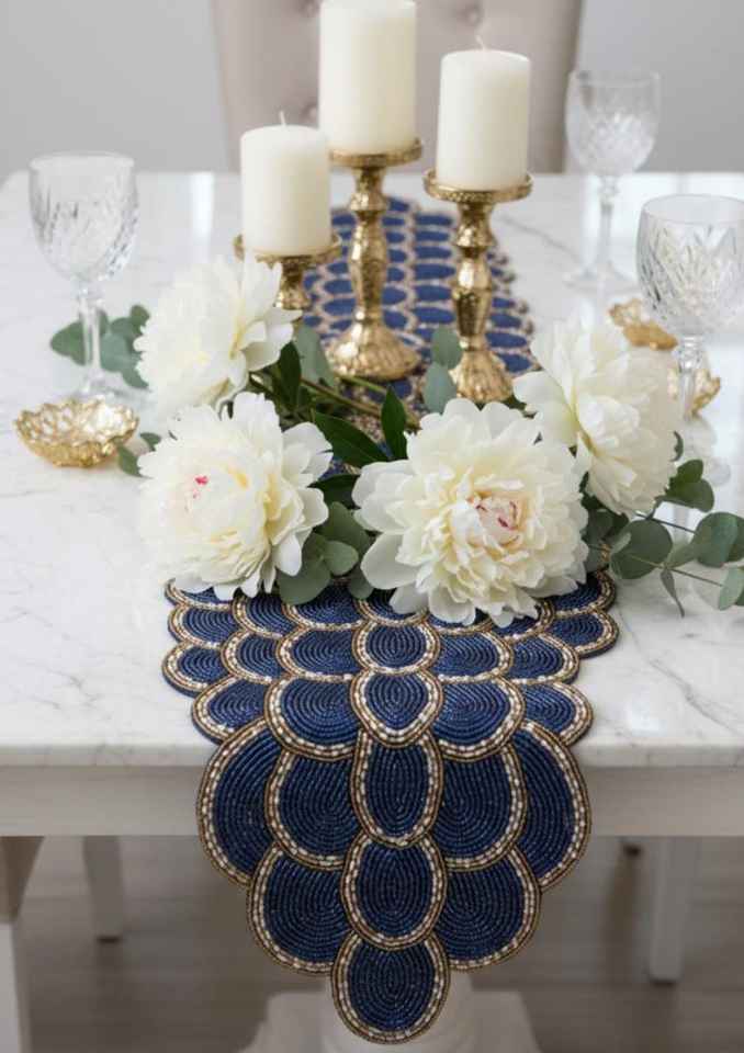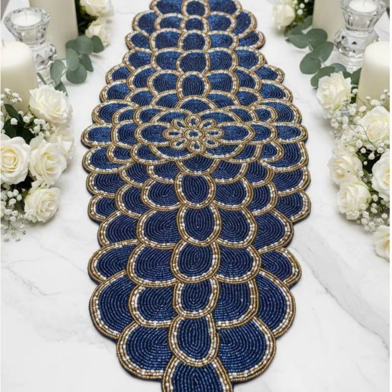 โต๊ะวิ่งลูกปัดทำมือโต๊ะ runner13x36inchfall ลูกปัดลายดอกไม้โต๊ะวิ่งสุดหรูตกแต่งบ้าน