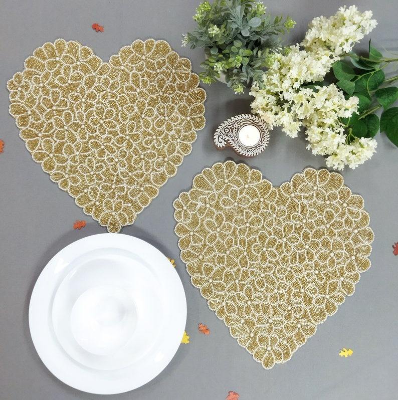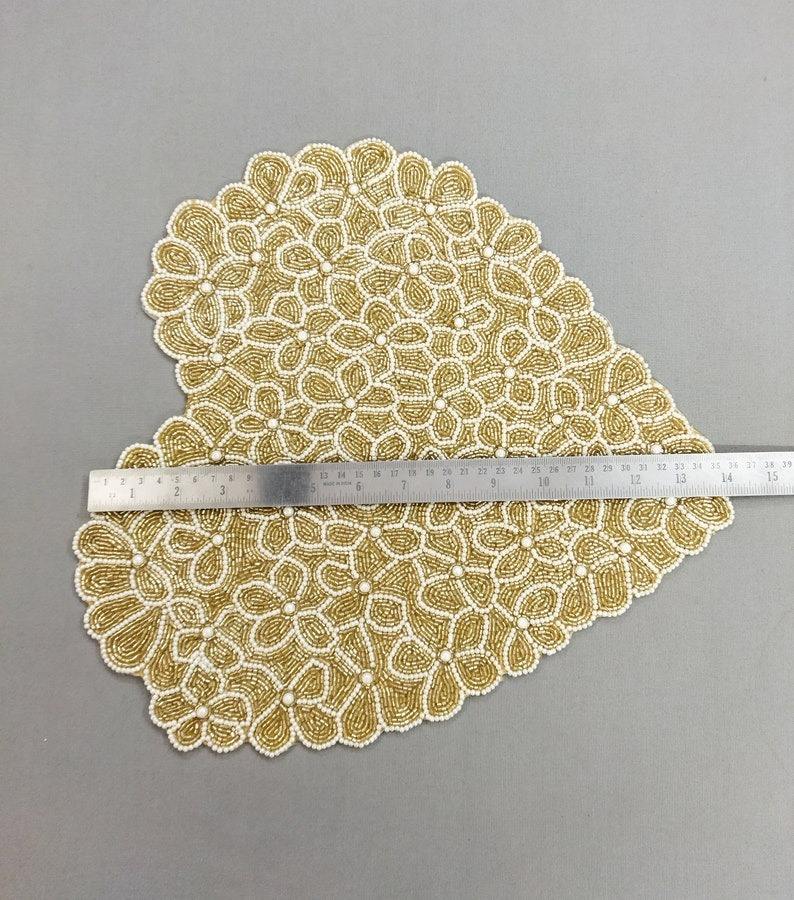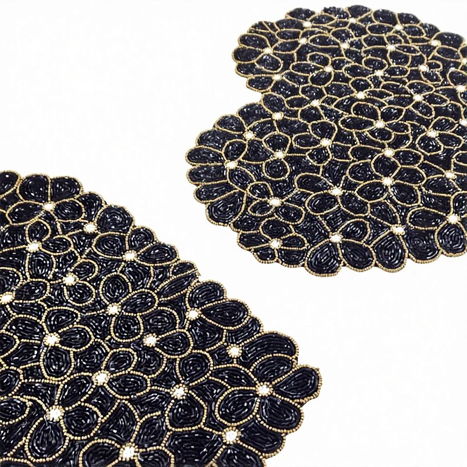 แผ่นรองจานทำมือประดับลูกปัดหรูหรา เป็นมิตรกับสิ่งแวดล้อม ลายดอกไม้ฤดูใบไม้ผลิ ขอบหยักหลากสี สำหรับตกแต่งบ้าน