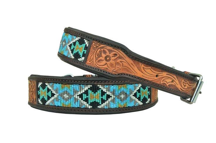 ปลอกคอสุนัขหนังถักลายชนเผ่าประดับลูกปัด รุ่น LC-206 จาก LEATHERCART ทำด้วยมือ ปรับขนาดได้ ใช้ได้ทุกฤดู