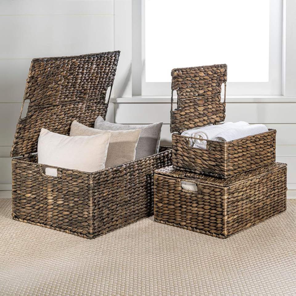 กล่องเก็บของผักตบชวากล่องสานสำหรับเก็บของจำเป็น