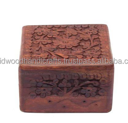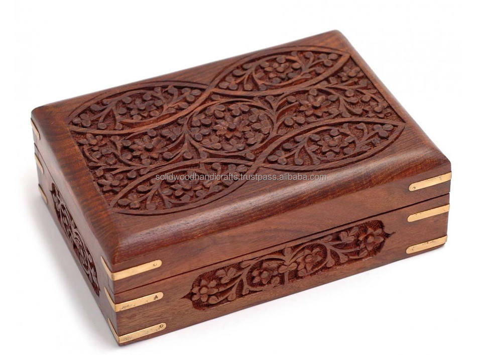 กล่องไม้แกะสลักทำด้วยมือกล่องเครื่องประดับไอเดียของขวัญที่ทำจากไม้สำหรับเก็บเหรียญเครื่องประดับ