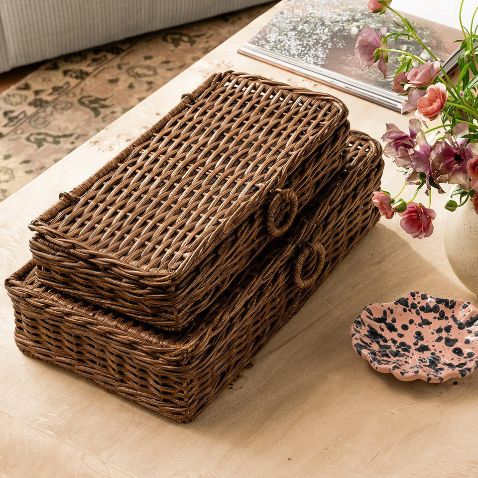 กล่องหวายสีทำมืออเนกประสงค์พร้อมฝาปิด ชุดตะกร้า ราคาโรงงาน กล่องเก็บของ