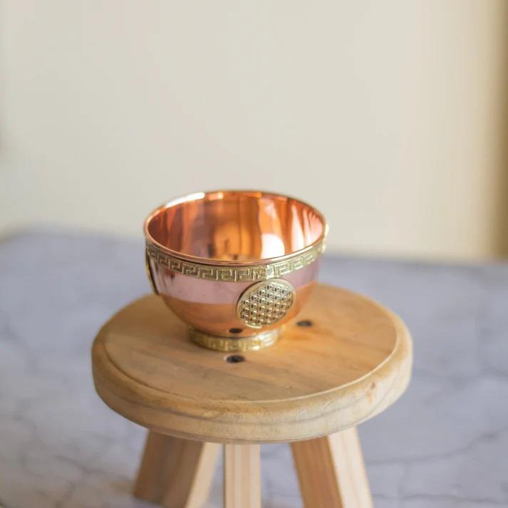 ชามทองแดงทำมือ ชามทองแดงตกแต่ง ชามทองแดงอายุรเวท ภาชนะทองแดงแบบดั้งเดิม ชามทองแดงสำหรับพิธีกรรม