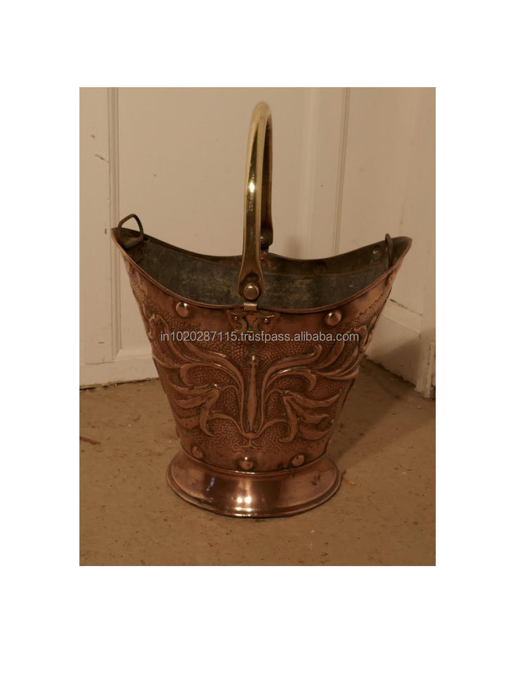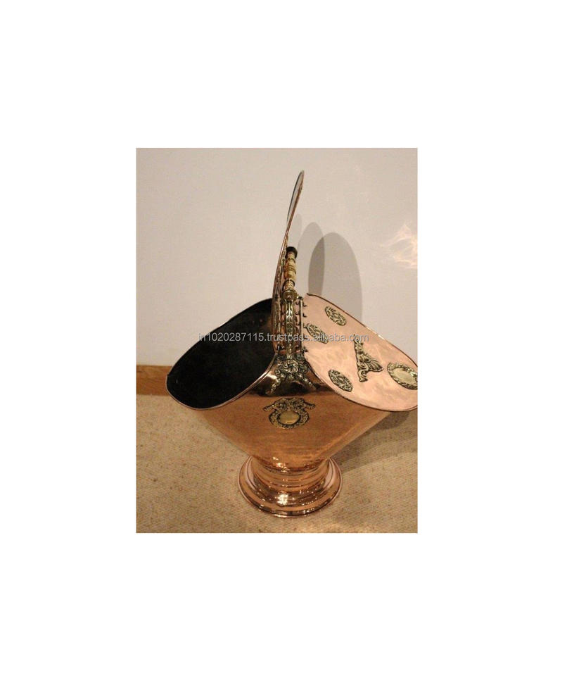 ถังถ่านหินทำด้วยมือทำจากทองแดงสำหรับตกแต่งเตาผิงสไตล์วินเทจเหมาะสำหรับอุปกรณ์ทำความร้อนภายในบ้านแบบดั้งเดิม