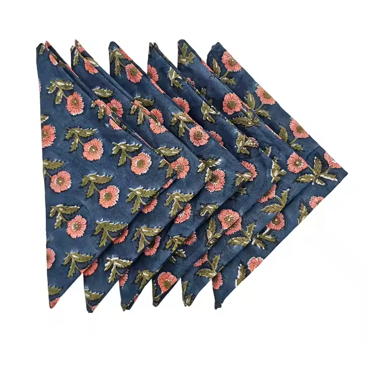 ผ้าเช็ดปากทำมือจากผ้าฝ้ายพิมพ์ลายบล็อก ชุดผ้าปูโต๊ะนำกลับมาใช้ใหม่ได้ สำหรับงานเลี้ยงอาหารค่ำที่บ้าน งานอีเว้นท์ ร้านกาแฟ และร้านอาหาร