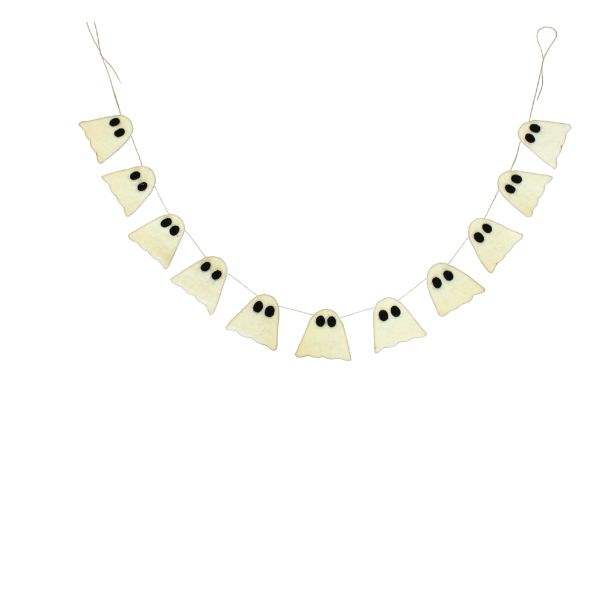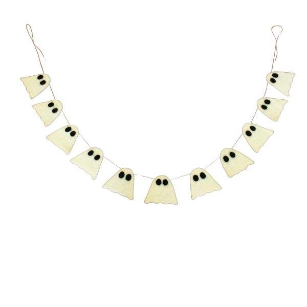 พวงมาลัยทำมือจากผ้าสักหลาด งานฝีมือจากผู้เชี่ยวชาญ ทำจากขนสัตว์ สีขาว รูปผี สำหรับตกแต่งฮาโลวีน