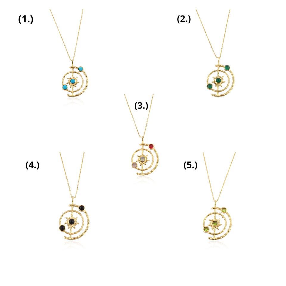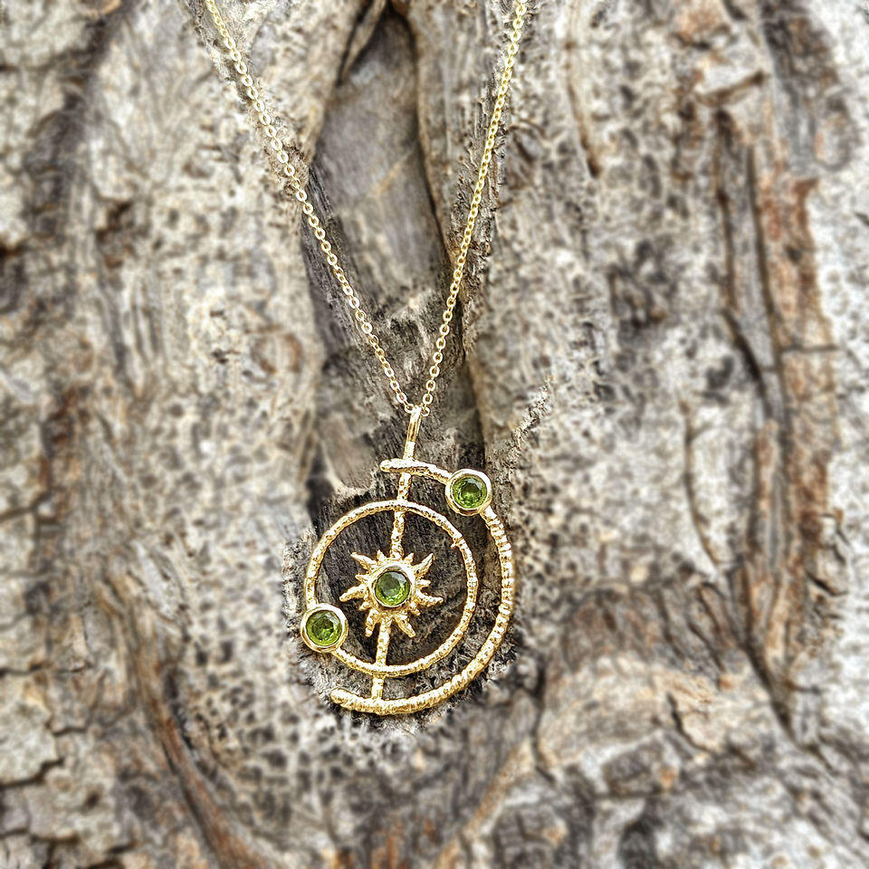 สร้อยคอทอง 18k ชุบทองเหลืองประดับเพอริดอตควอตซ์รูปดวงอาทิตย์ ดีไซน์ระบบสุริยะจักรวาล งานแฮนด์เมด เหมาะสำหรับทั้งชายและหญิง ของขวัญเครื่องประดับ
