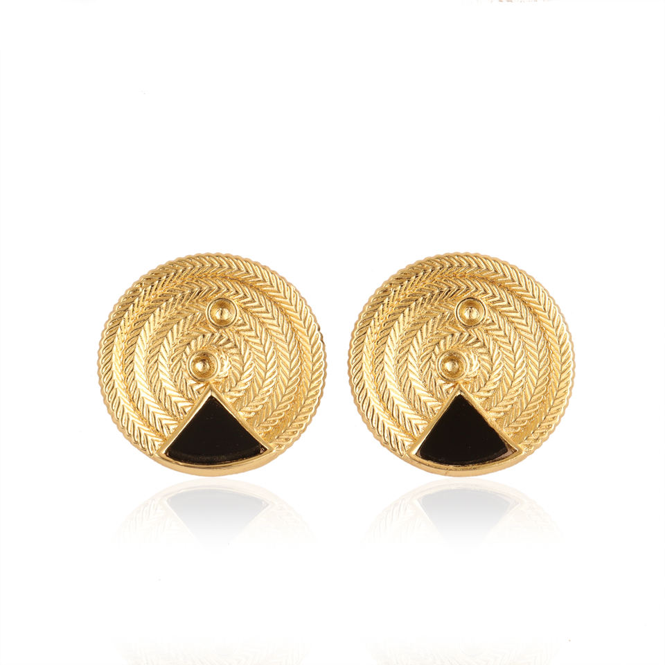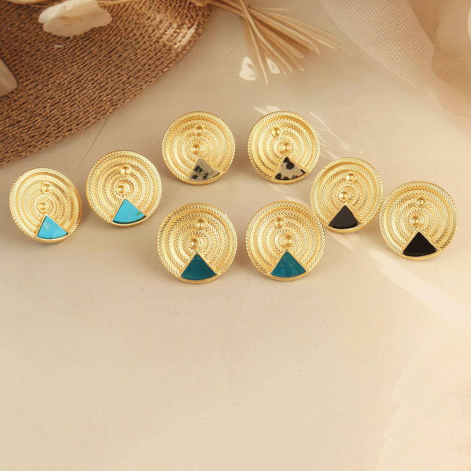 ต่างหูเม็ดกลมทองเหลืองชุบทองทำด้วยมือพร้อมต่างหูหินสามเหลี่ยมสีดำรูปทรงเรขาคณิตสำหรับผู้หญิง