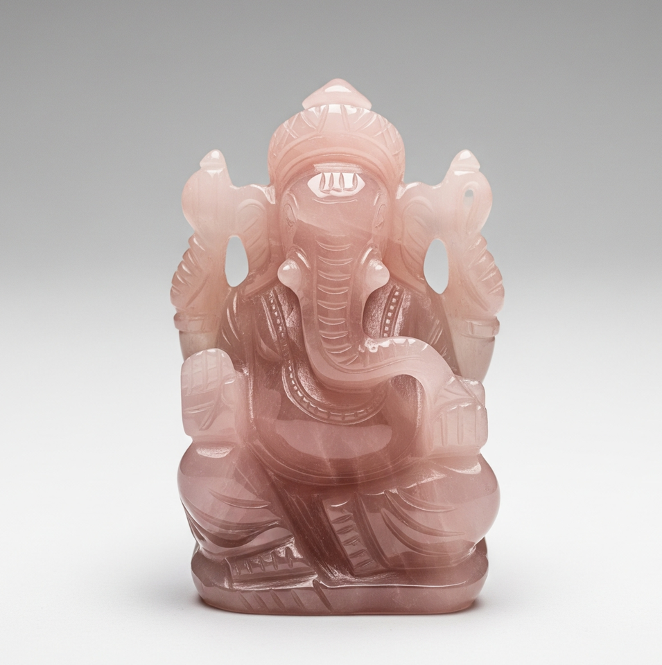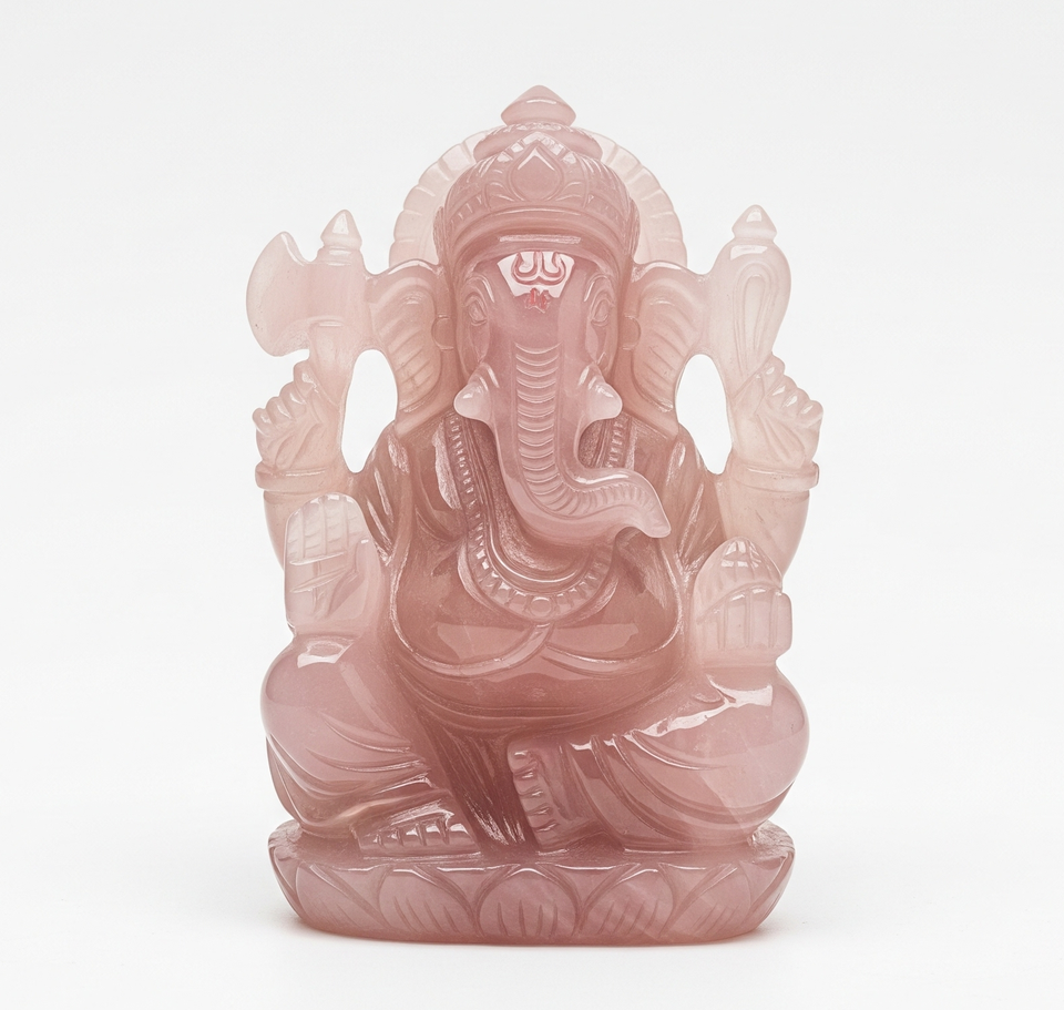 รูปปั้นพระพิฆเนศที่แกะสลักจากหินควอตซ์ธรรมชาติแกะสลักทางศาสนาแกะสลักด้วยมือ