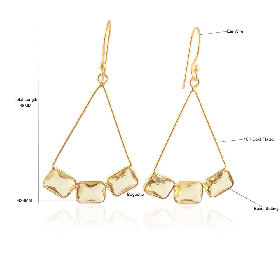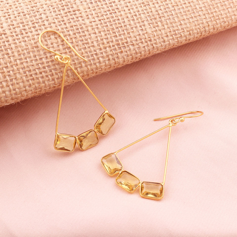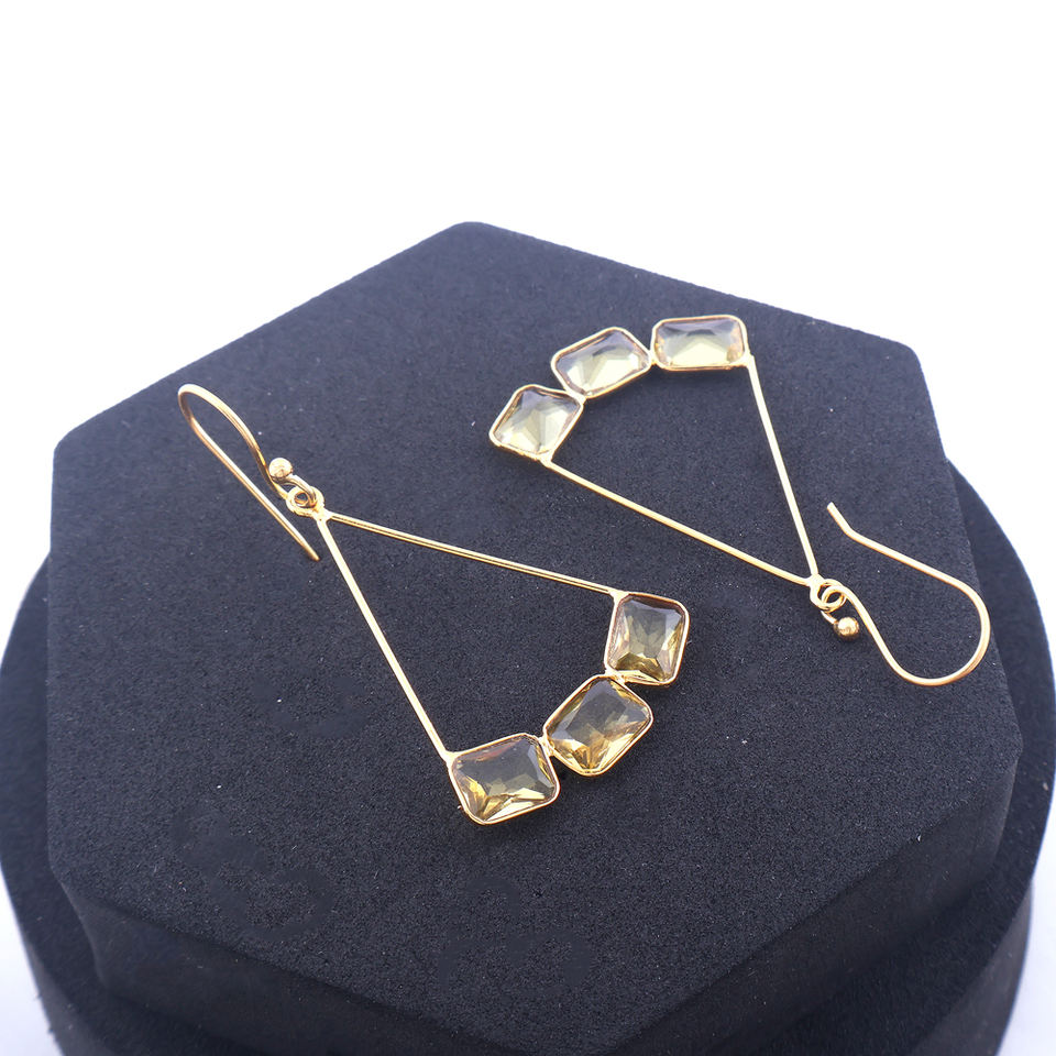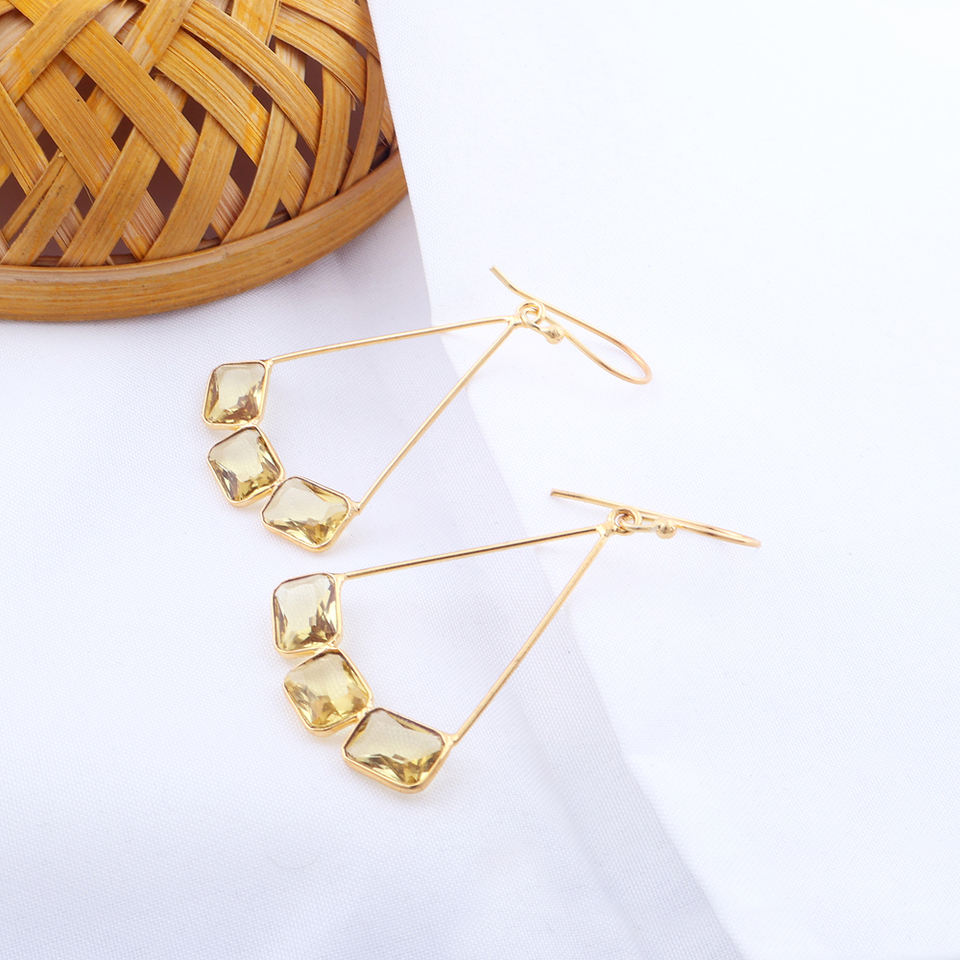 เครื่องประดับทำด้วยมือสำหรับผู้หญิงต่างหูห้อยควอตซ์หินเลมอนต่างหูทองเหลืองชุบทองรูปทรงเรขาคณิต