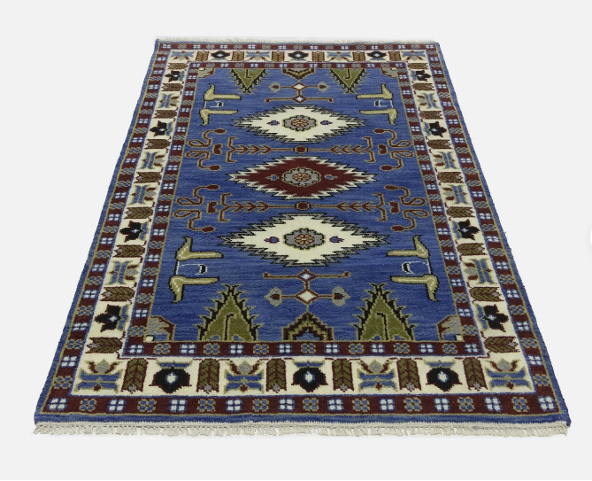 พรมขนสัตว์ทำมือแบบคาซัค พรมทอมือสไตล์วินเทจ สำหรับห้องนอน ห้องครัว ห้องเด็ก ชุดสีสันสดใสสำหรับตกแต่งบ้าน