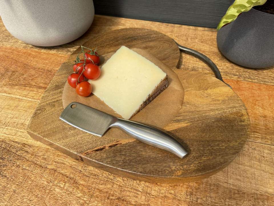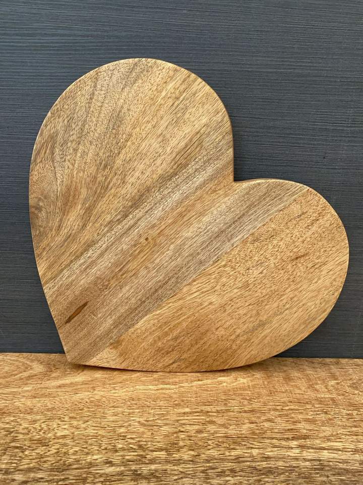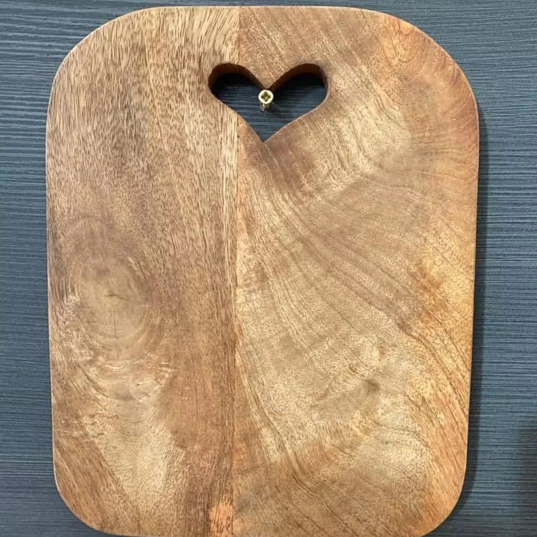 เขียงไม้มะม่วงทำด้วยมือมีด้ามจับรูปหัวใจสำหรับผักและชีสในขนาดที่กำหนดเอง