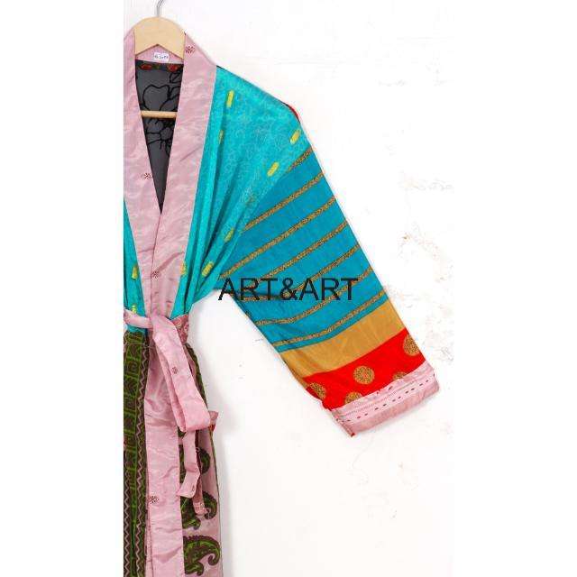 Handmade patchwork Women's Silk Kimono Robe Floral Printed Short Maxi Dress Bathrobe KneeLength Sleepwear for Home Summer Autumn