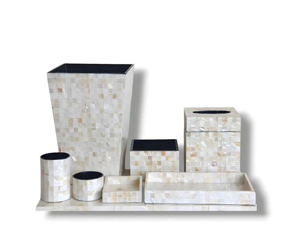 ชุดจัดระเบียบในห้องน้ำแบบโมเสกสำหรับใส่สบู่และฝังกระดูกสีเขียวสีชมพูทำด้วยมือ
