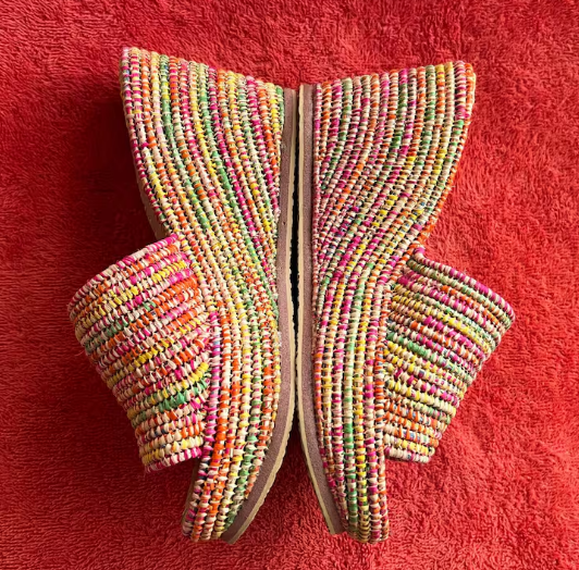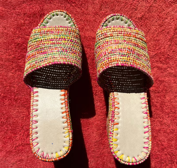 รองเท้าแตะส้นปาล์มทำด้วยมือ | รองเท้าแตะสไตล์โมร็อกโก | ทำมือหลากสีจากต้นปาล์มสังเคราะห์ธรรมชาติ
