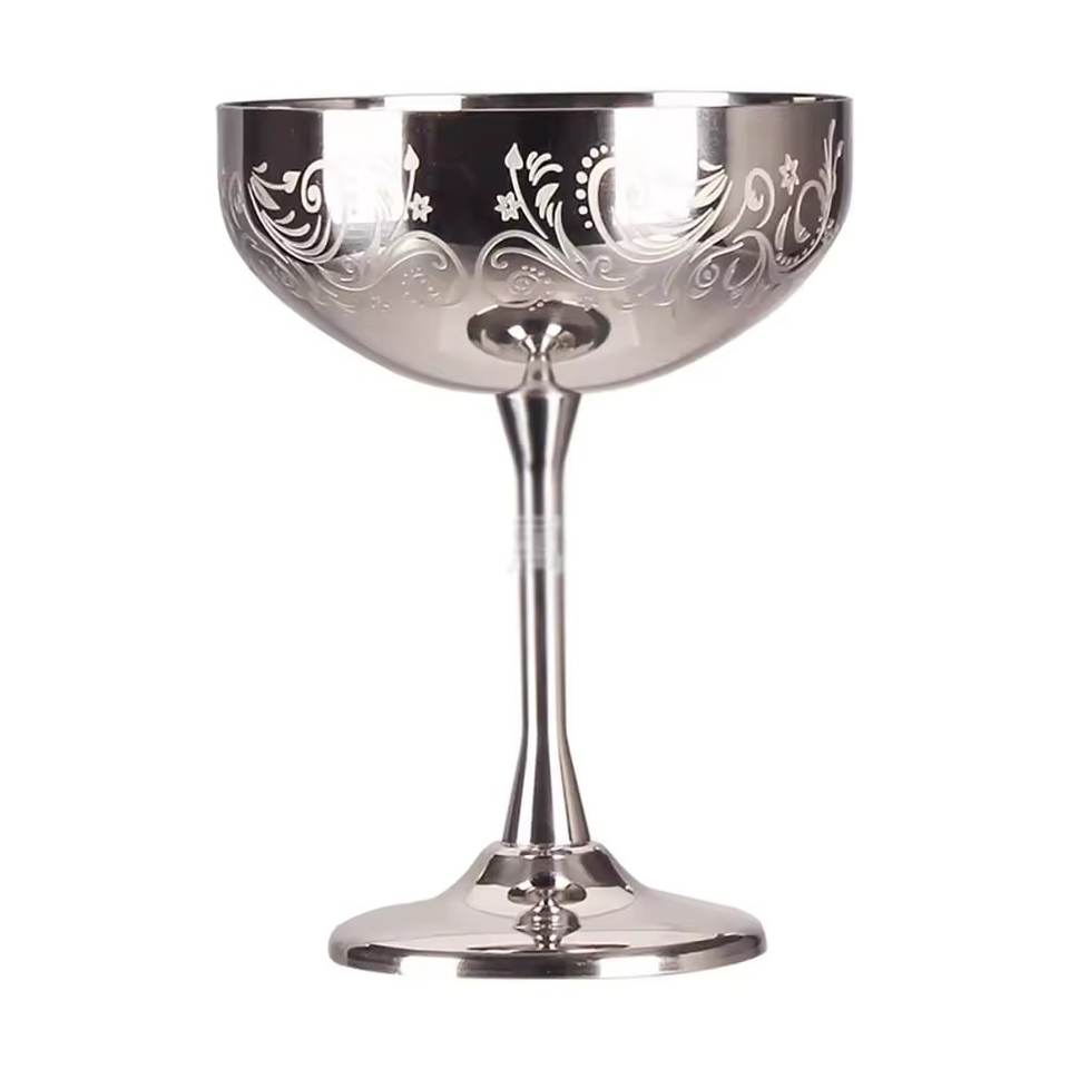 Handmade round Silver Plated Wine Glass with Engraving Design Long Stem Red Wine Cocktail Drinking Glass for Bar Ware Hotels