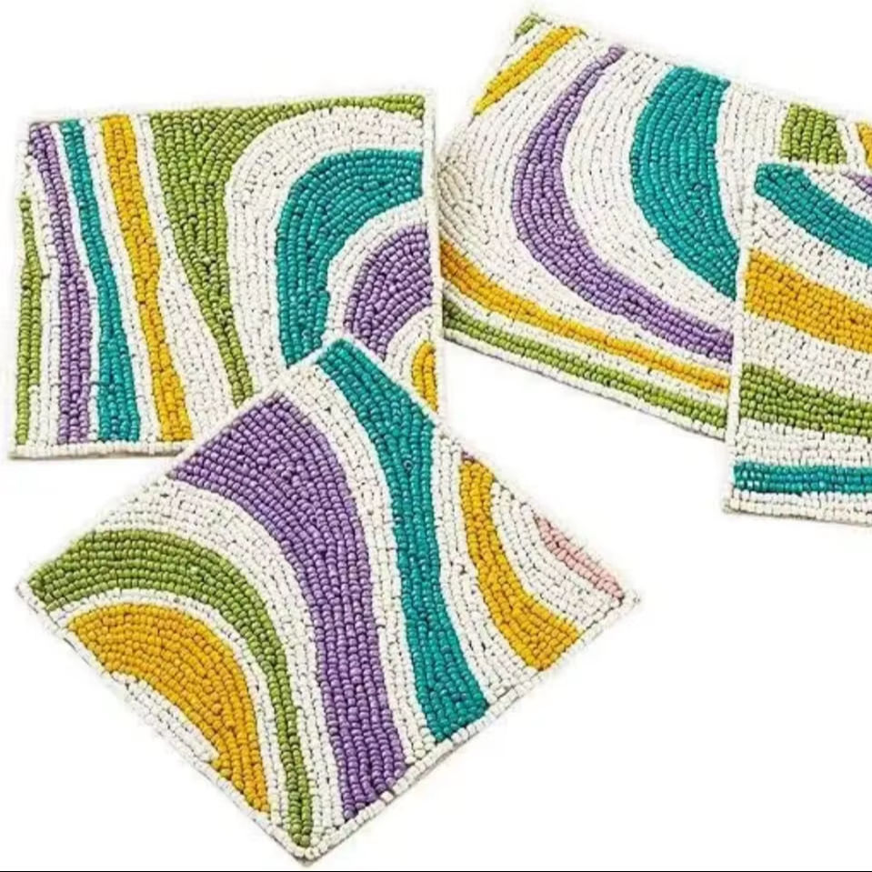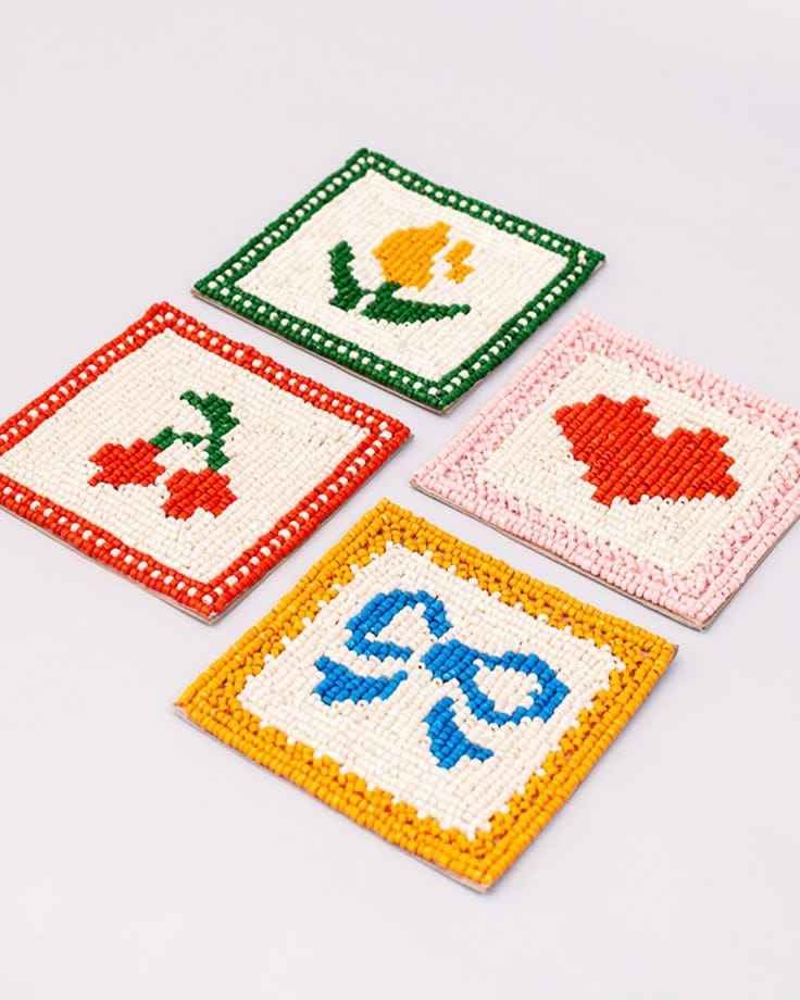 ที่รองแก้วปักลายประดับลูกปัดชนิด