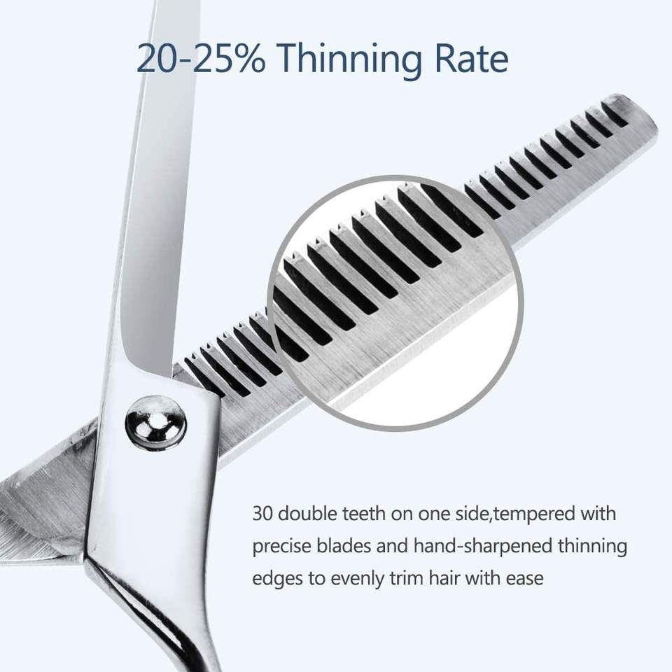 กรรไกรซอยผมสแตนเลส 30 ฟัน ใบมีดคมสองด้าน พร้อมสกรูปรับระดับและที่พักนิ้ว สำหรับใช้ในร้านเสริมสวย