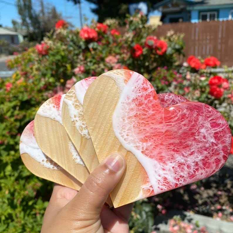 ถาดรองแก้วทำจากไม้และเรซินทำมือเหมาะสำหรับปกป้องพื้นผิวเพิ่มความสง่างามและเป็นของขวัญสำหรับทุกโอกาส