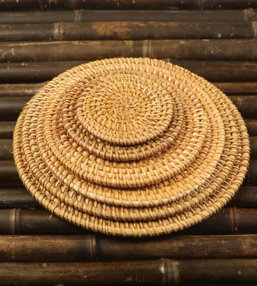 แผ่นรองแก้วหวายสานทำมือ สำหรับกาแฟ ชา แก้วน้ำ โต๊ะอาหาร และของตกแต่งบ้าน ผลิตในเวียดนาม